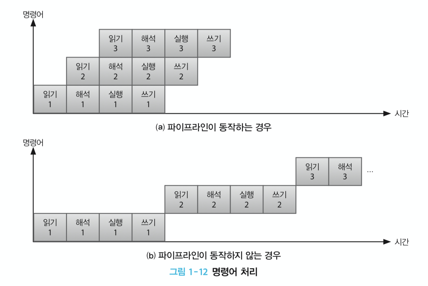 하지만 메모리의 내용을 읽는 시간은 CPU가 연산을 하는 시간에 비해 오래 걸린다. 그러므로 CPU가 연산을 수행하지 않는 유휴(idle) 상태에 놓이게 된다. 이러한 병목현상을 개선하기 위한 방법으로 프로그램 실행에 필요한 명령어와 데이터를 분리해서 저장하는 방법을 하버드 구조라고 한다.