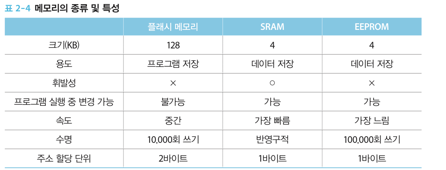 - 4KB의 휘발성 SRAM을 가지고 있다.