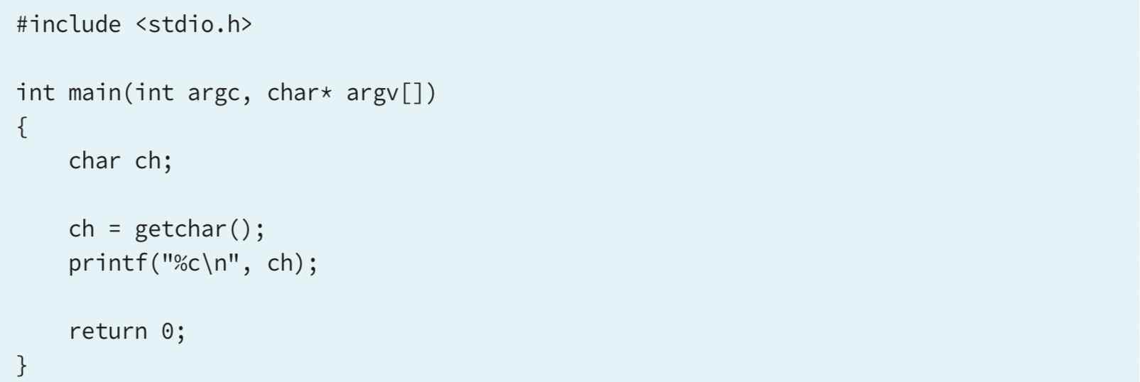 위의 C 코드에서 보면 키보드로 입력된 값을 반환하는 함수로, 입력장치인 키보드와 getchar 함수의 데이터 교환은 USB 제어장치와 운영체제가 알아서 해주지만, 마이크로컨트롤러는 이렇게 친절한 운영체제가 없다.