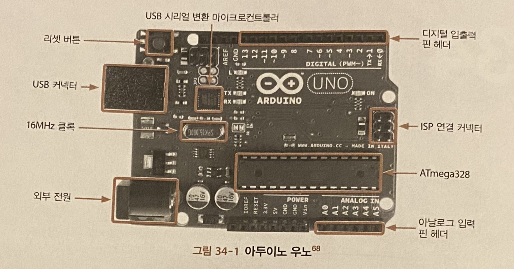 찾아보니 맥 사용자들은 avrdude나 Arduino Studio를 사용해서 개발하는 것도 가능하다고 해서 나는 이미 깔려있는 Arduino Studio를 사용할 예정이다. 그리고 책을 둘러보던 중 34장에 아두이노와 마이크로컨트롤러에 관한 전반적인 설명이 있어서 이 챕터를 먼저 공부하기로 하였다.