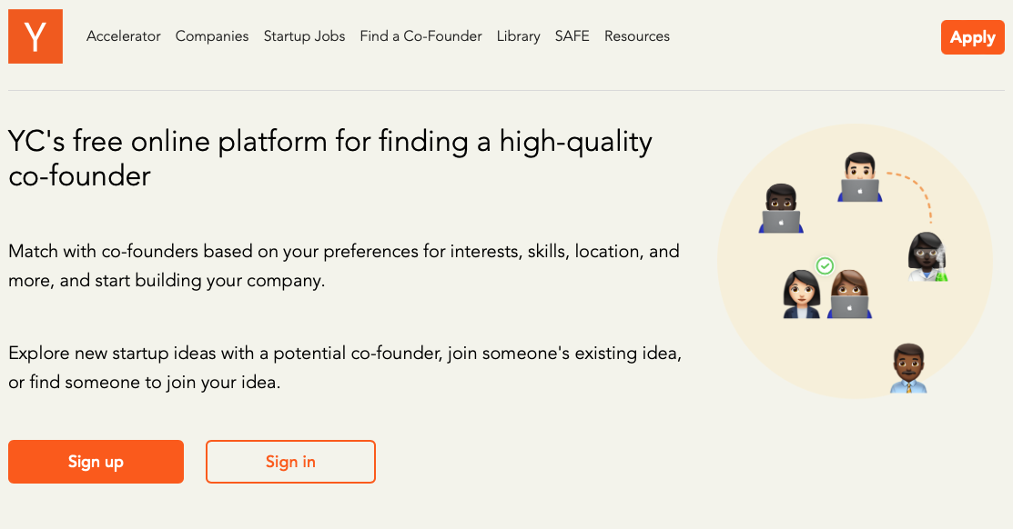 미국의 가장 큰 엑셀러레이터인 YCombinator가 운영하는 이 코파운더 매칭 플랫폼에서는 자신의 관심사와 스킬을 바탕으로 다양한 코파운더를 만날 수 있다. 지금까지 대략 100명이 넘는 전세계의 사람들과 여기서 연결이 되었고, 이 중 대략 4명 정도와 함께 일하게 되었다. ㅎㅎㅎ