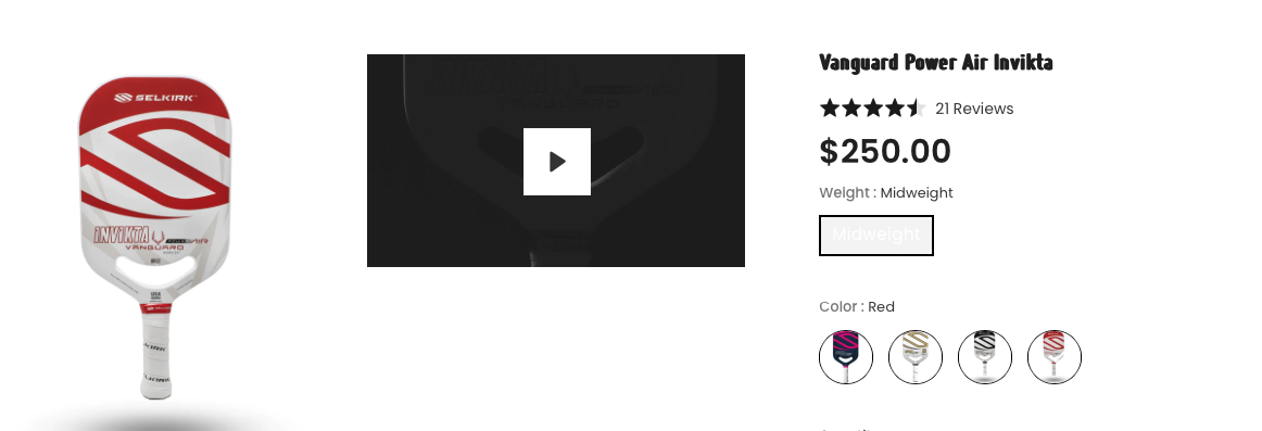 세개를 다 써봤을 때 가장 마음에 드는 패들은 가운데 빨간색 Selkirk Vangauard 패들이다.