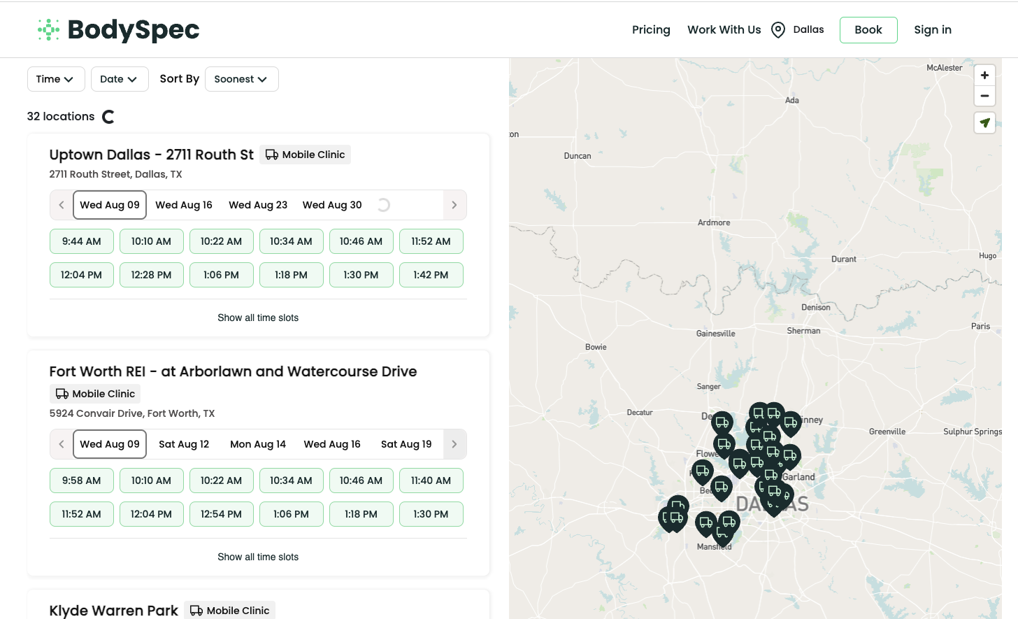 여기는 따로 오피스가 있는게 아니라 각 지역마다 이렇게 밴이 있는데 온라인으로 예약한 다음 밴 안에 구비된 기계에서 직원이 스캔해주는 형식이다.